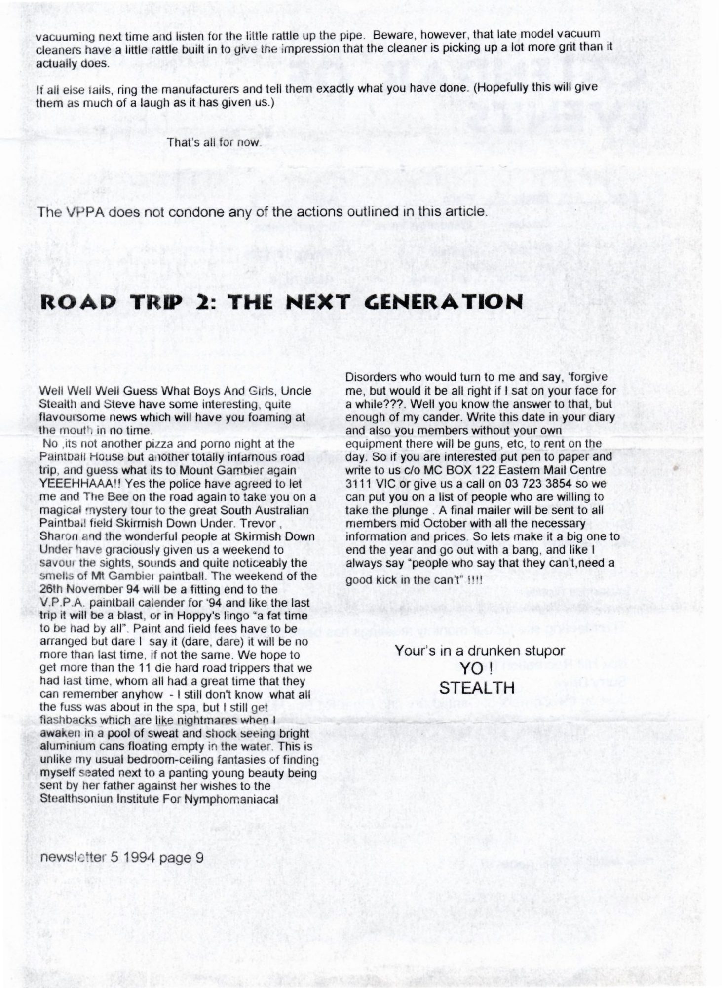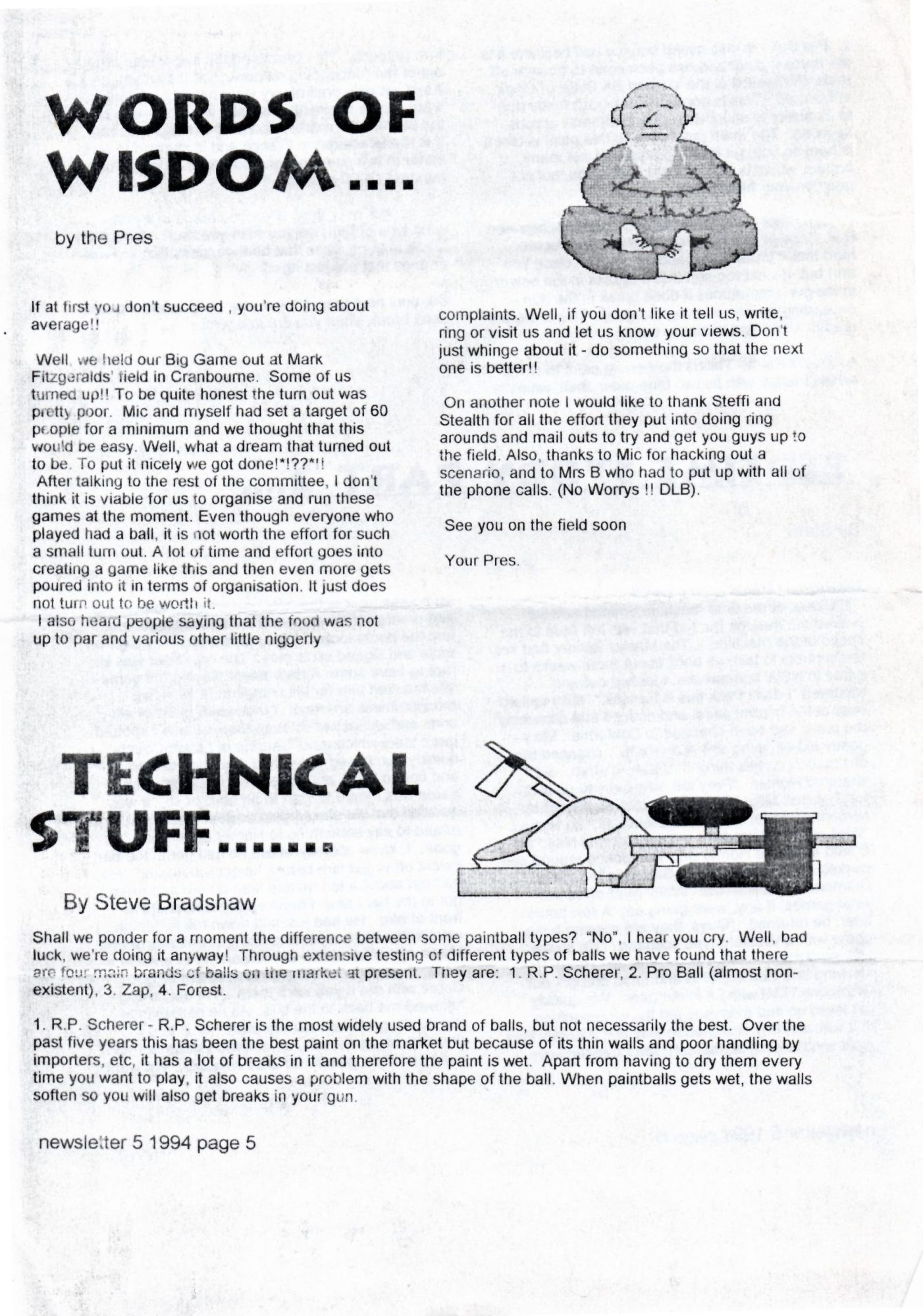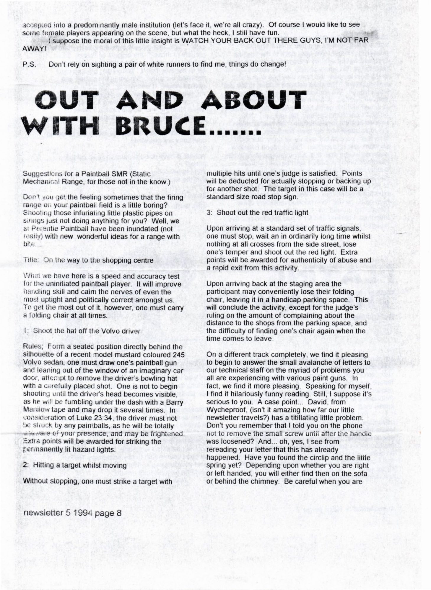 Here’s a copy of the Victorian Paintball Players Association (VPPA) newsletter ‘Balls An’ All From mid 1994. The VPPA were an Australian players association based in Melbourne in the 1990’s. The paintball scene in Victoria, Australia was really taking off at this time. There were tournaments, road trips, club days and social events. It was a great time to be involved with paintball.